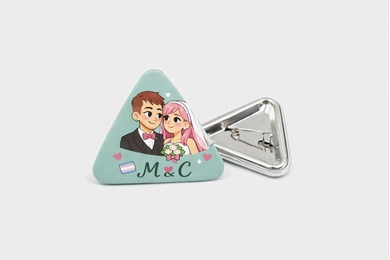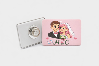 ¿Vas a regalas las tradicionales chapas personalizables para boda redondas o prefieres sorprender a tus invitados con otro modelo? Puedes elegir entre cuadradas, rectangulares, ovaladas, triangulares o en forma de corazón, a las que solo tendrás que agregar la imagen o el texto que quieras. Por ejemplo, una chapa personalizada para boda con una foto con tu pareja y la fecha del enlace es todo un clásico. No obstante, si quieres ser más original e innovar con algo diferente, en Qustommize haremos las chapas que necesites.